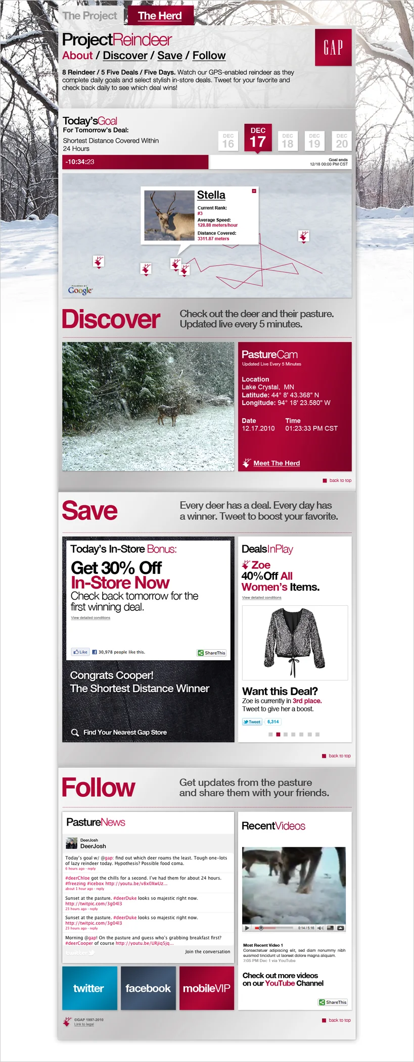 What did Gap need to do to stand out in the deluge of holiday noise? Wire up a few reindeer with GPS collars, assign each one an unlockable deal and stream it on the internet. Seemed pretty obvious to us.